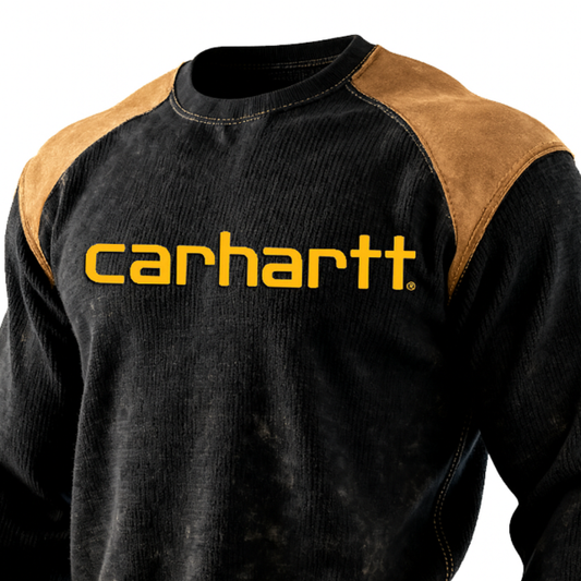Men's Corduroy Patchwork Suede Retro Vintage Outdoor Round Neck Sweatshirt