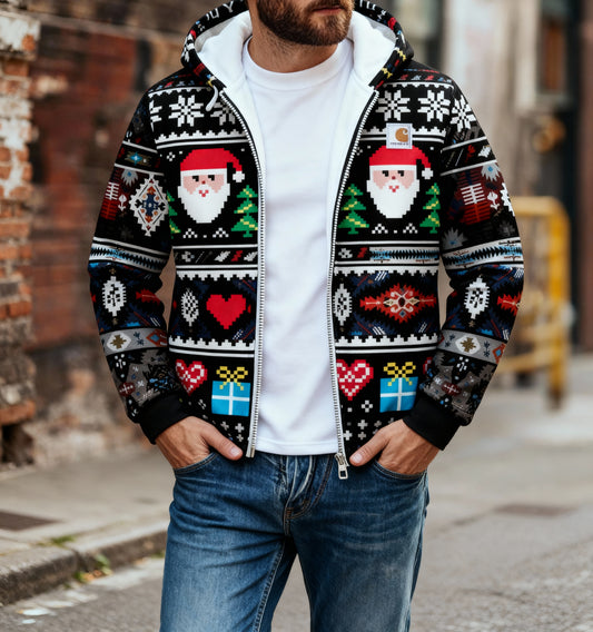 Men's outdoor casual autumn and winter logo classic plaid hooded jacket