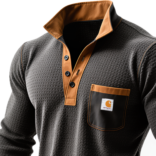Men's Vintage Waffle Suede Henley Sweatshirt with Chest Pocket