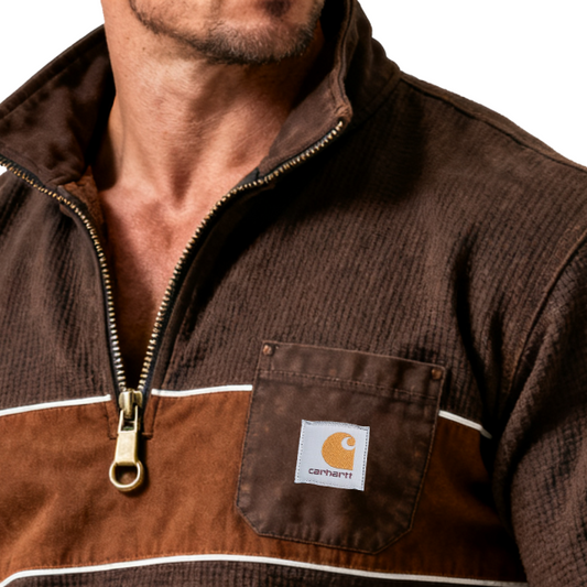 Men's Vintage Western Terry Quarter-Zip Pullover Sweatsgirt With Striped webbing