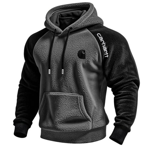 Men's Vintage Suede Contrasting Patches Pocket Long Sleeve Hoodie