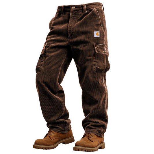 Men's Vintage Western Cowboy Black Corduroy Multi-Pocket Cargo Pants and Trousers
