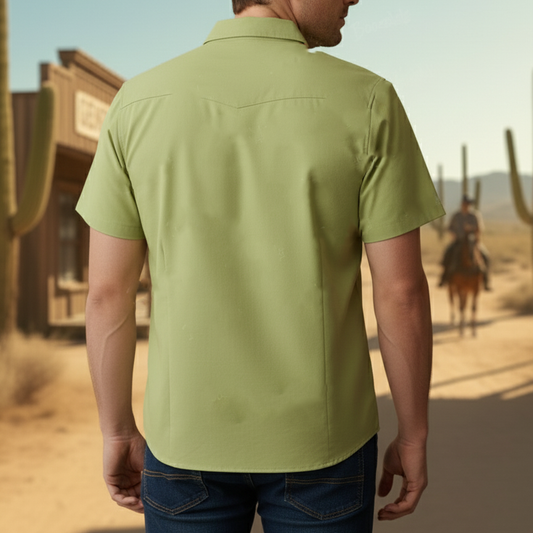 Western - Style Short - Sleeve Shirt with Frog Cowboy Prints