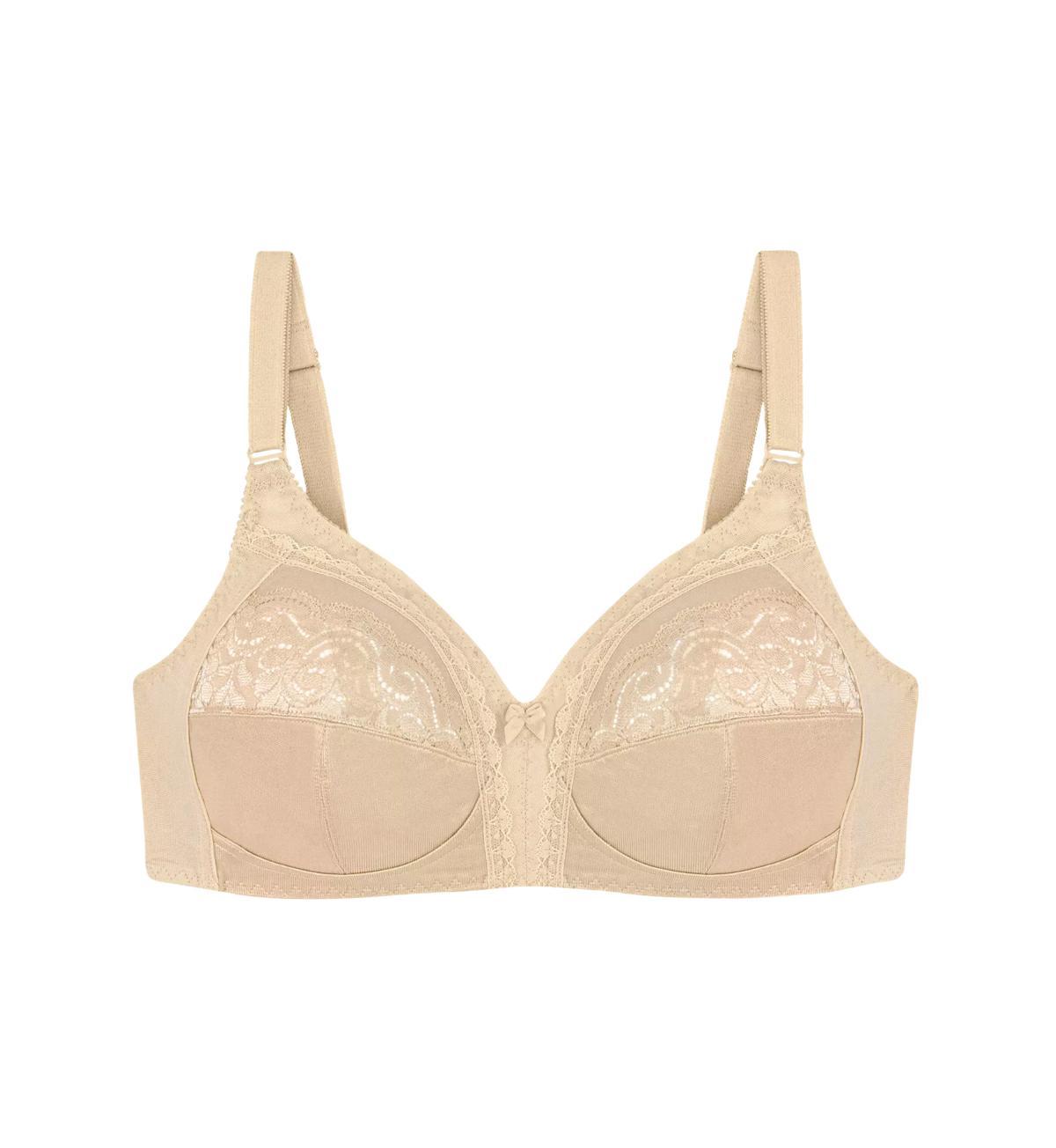 - Unpadded cups made of supporting, elastic texture with lace inserts
