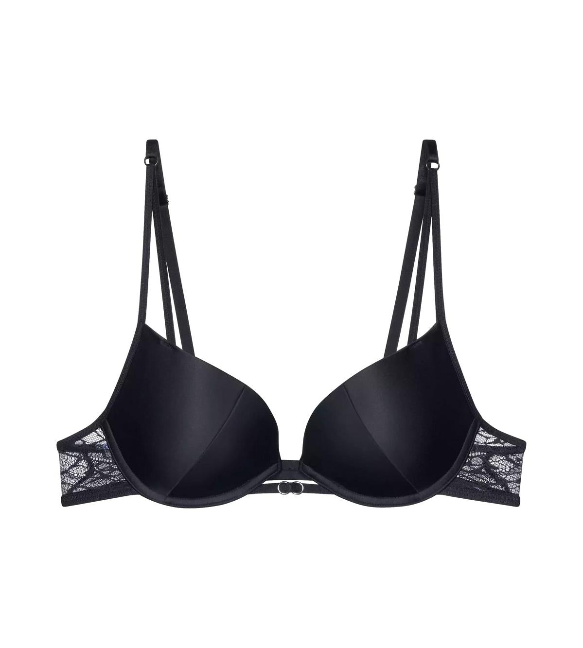 Luxurious. Sexy. Feather-light to wear. We created this bust-flattering bra with support in all the right places. Push-up braUltra-flexible comfort wireCharming front and centre strap designFeather cups for a lightweight, comfy feelMade with Italian lace, dotted mesh wings and stretch satin cupsDecorative double rings on the front OEKO-TEX® STANDARD 100, 22.0.22419 Hohenstein HTTI