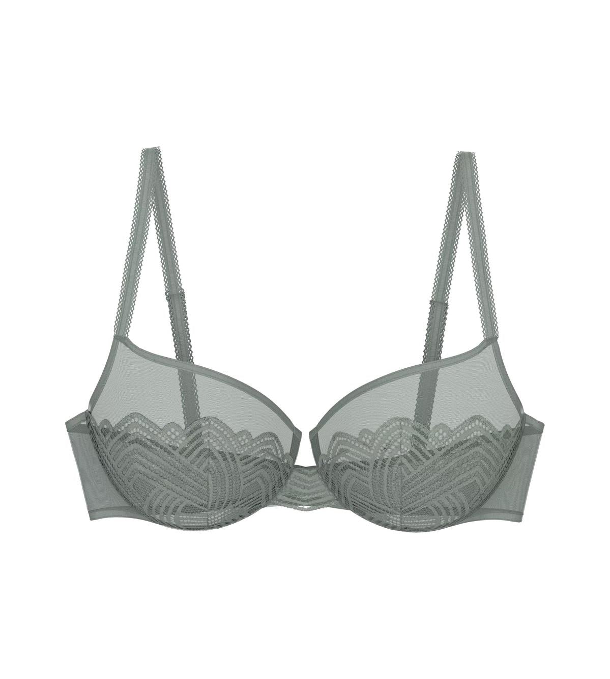 Prettiness will envelope your curves in this lace and tulle trimmed bra. Enhancing your shape, the balconette style provides ample lift and support.