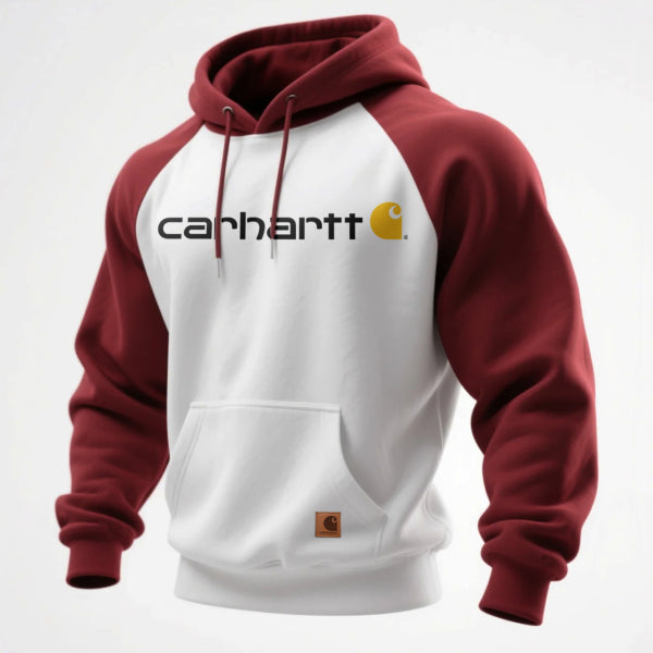 • Design Elements: Contrast color sleeves, front pocket, and drawstring hood