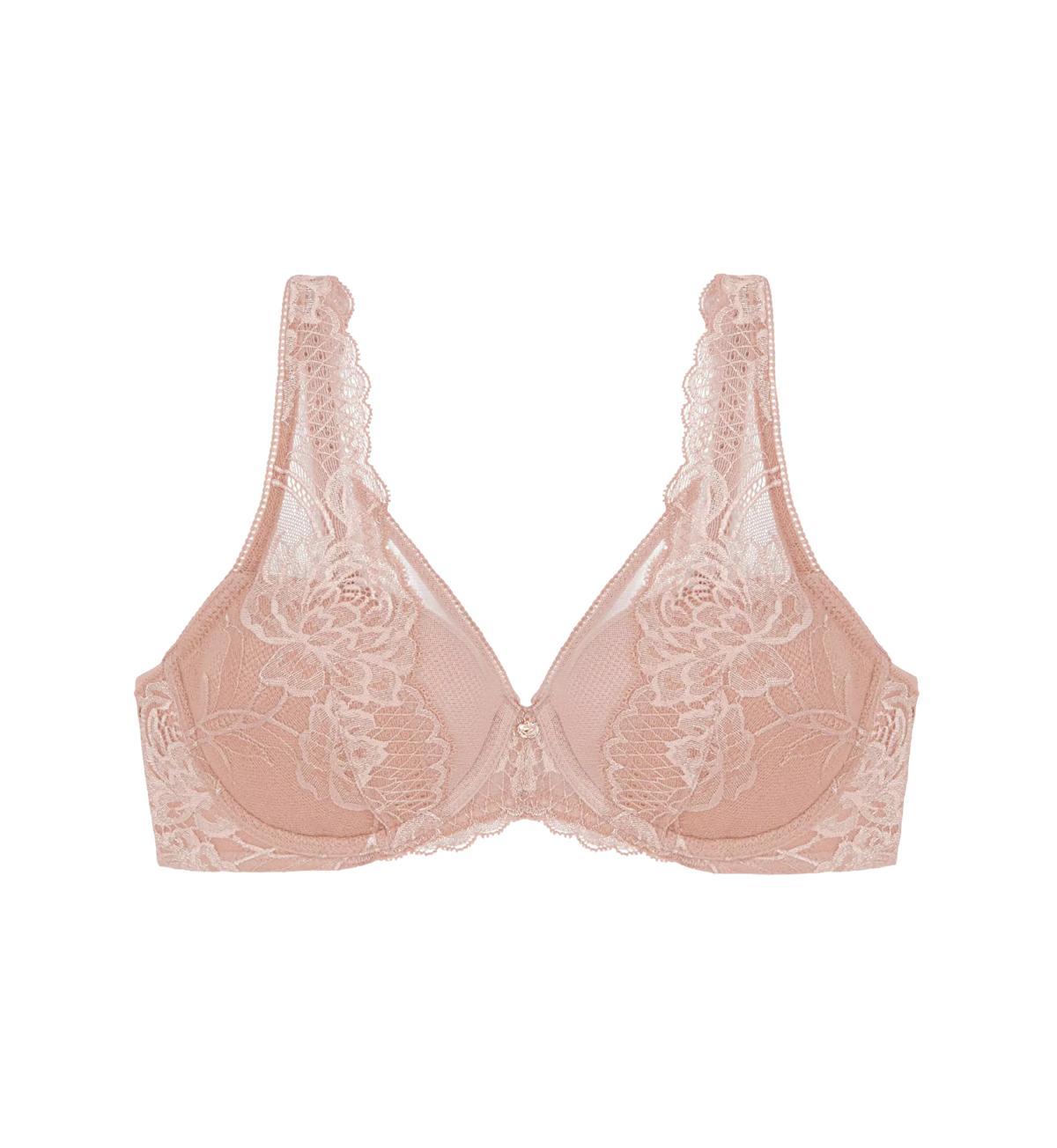- Breathable wired, padded Wild Peony Florale bra with perforated jacquard spacer cups